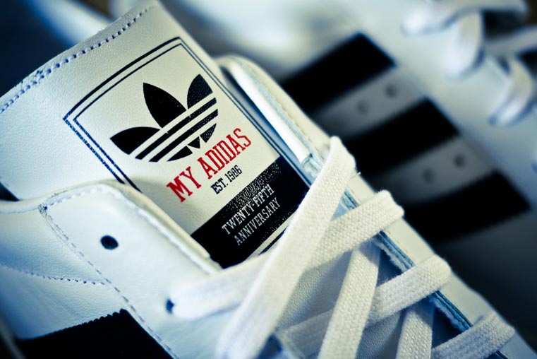 Je ne vais pas en faire des tonnes sur le coup là mais juste vous laisser admirer ces baskets et leurs détails super travaillés. Adidas frappe un grand coup avec cette collaboration avec Run DMC et ces Superstar promettent déjà de devenir des must-have… 1986, la date de sortie du tube « My Adidas » est bien évidemment brodée sur la baskets et on remarque aussi une chaîne en or sur les lacets…