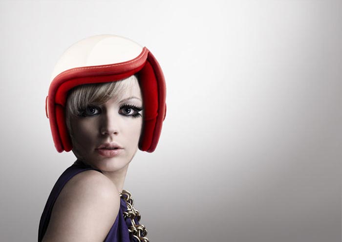 Sa forme est directement inspirée des coupes de cheveux crantées des femmes dans les années soixante. Avec un semblant de frange placée sur le côté… J’adore, c’est très original, très classe et en même temps très moderne. Ce casque de moto design pour femme a été imaginé par Daniel Don Chang qui, grâce à cette création inédite, a remporté un International Design Excellence Award 2010 Bronze…