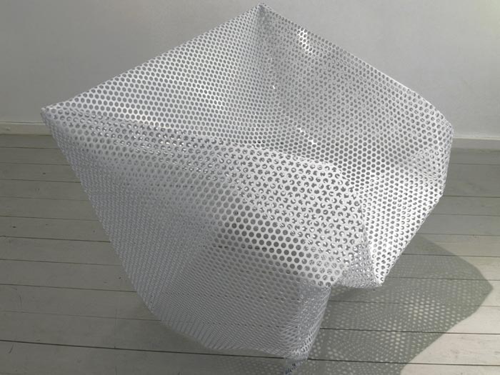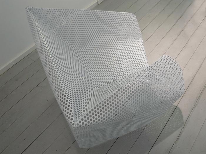 C’est Ezri Tarazi qui est à l’origine de ce concept… Free Falling est, au départ, un cube de métal ajouré. Basique. Pour lui donner sa forme, on a fait tomber un mannequin (type mannequin de vitrine), rempli de béton sur elle. En tombant, le mannequin déforme le cube, vient s’encastrer dedans, et forme une assise… Vous saisissez?