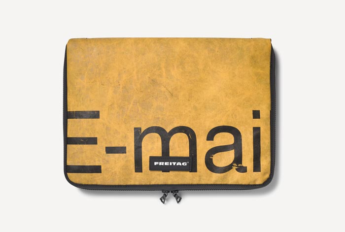 A la base, Freitag était plutôt spécialisé dans les accessoires pour objets plus petits, comme les iPhone ou alors carrément dans la création de sacs et sacoches. Mais aujourd’hui, ils étendent leur production et sortent une ligne de housse de protection pour ordinateurs portables Macbook, en 13″, 15″ et 17″… Toutes sont réalisées en matériaux recyclés type bâche de camion et la plupart arborent un message sympa et des couleurs dynamiques.