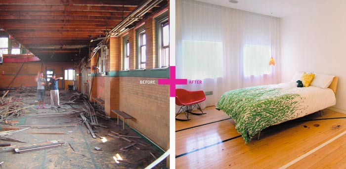 On se rend encore mieux compte de l’importance des travaux lorsque l’on voit de quoi ils sont partis : un hangar vide, complètement vide qu’il a fallu entièrement structurer. Le résultat final est bluffant, l’aménagement de ce loft est une véritable réussite!