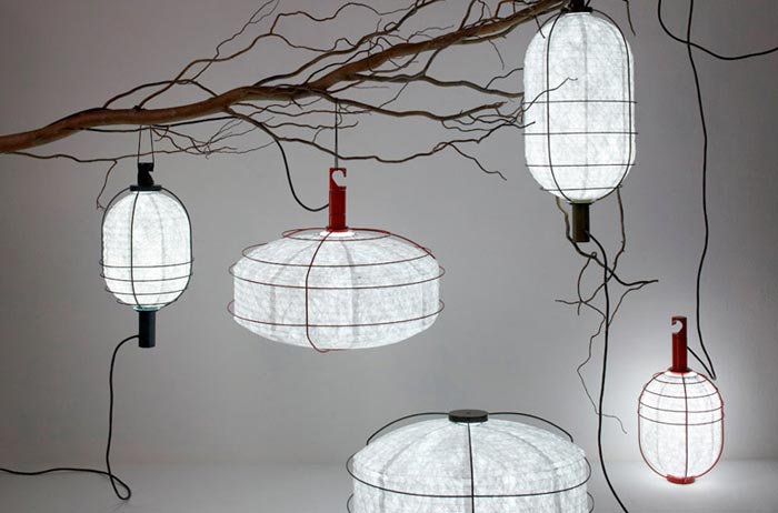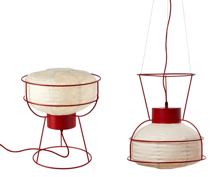 Ces luminaires d’ambiance en papier fait main rappellent un peu ces boules japonaises que l’on voit partout à ceci près que In & Out ainsi que Cage comportent une structure en métal peint qui leur donnent des allures de lampes baladeuses revisitées…