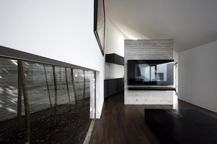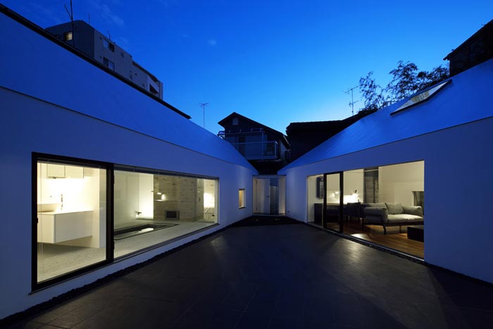 C’est le cabinet Satoru Hirota Architects qui a imaginé cette maison design de plain pied. Elle tranche singulièrement avec les bâtiments environnants qui eux, sont tous construits sur plusieurs étages… Un petit regret en ce qui me concerne : je ne sais pas si ce sont les photos qui donnent cette impression mais je trouve que cette maison baptisée Lik House anque un peu de lumière malgré les larges baies vitrées qui entourent la cour interieure