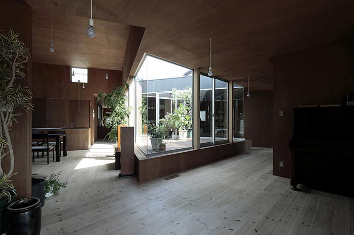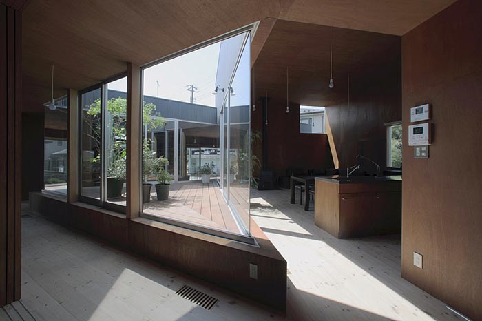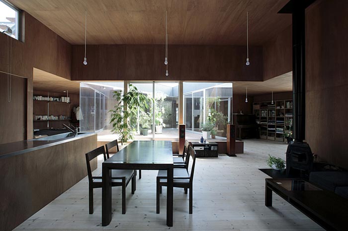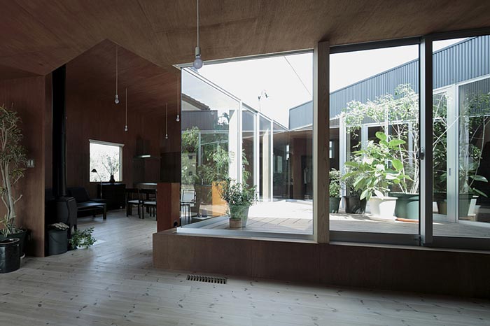 La maison se compose de trois ailes qui s’articulent autour de ce patio qui me plaît tant… C’est le cabinet d’architecture Studio Synapse qui l’a imaginée. C’est une maison design de plain pied avec un aménagement intérieur assez épuré. heureusement que le bois et les plantes lui donnent un peu de chaleur!