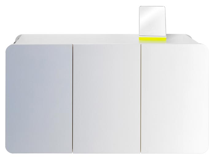 Rien de révolutionnaire, vous allez me dire… Pas faux… Sauf que ces meubles ont un petit truc en plus… Ils semblent flotter… La semi-transparence des portes y est sans doute pour beaucoup mais bon… J’aime quand même!