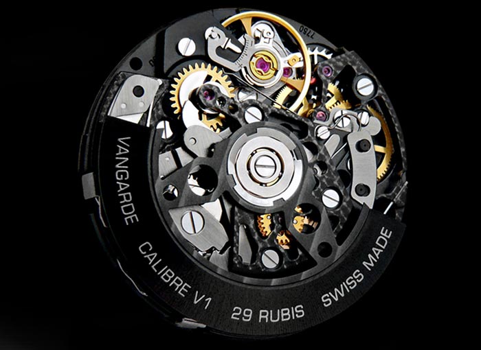 Cette montre de luxe est la première produite par Vangarde. Et le moins que l’on puisse dire c’est que le designer français a réussi son coup, elle est vraiment très belle et très élégante. Son cadre est en acier galvanisé et tous les engrenages sont visibles et ne sont pas cachés par un cadran inutile…