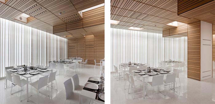 Ce restaurant design a été aménagé dans les locaux de Cleary Gottlieb Steen & Hamilton qui utilise cet espace non seulement pour se restaurer mais aussi pour diverses manifestations et expositions. L’espace est clair et aéré, le mélange de bois clair, de blanc relevé par des touches de bordeaux est vraiment magnifique. Roberto Murgia a réellement recrée un restaurant design épuré et chaleureux en intégrant des lignes graphiques qui dynamisent l’ensemble du lieu. Ce n’est ni trop blanc, ni trop moderne, mais le mix est juste et élégant.