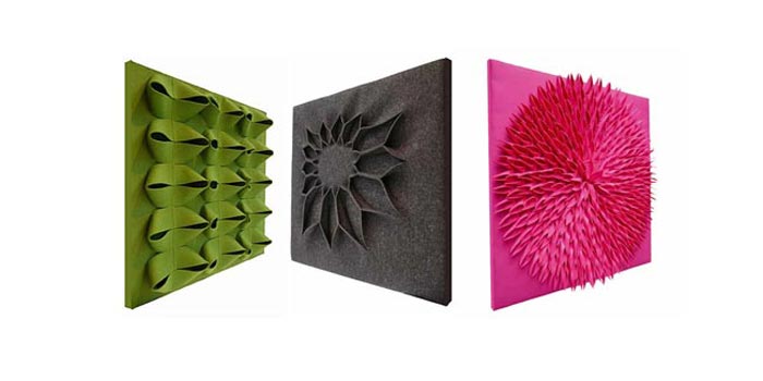 Ces panneaux muraux acoustiques sont l’œuvre de Anne Kyyro Quinn. Ils ont été réalisés avec du feutre de très haute qualité et sont assemblés à la main… Je trouve que le rendu est vraiment sympa. Les couleurs sont toniques et il me semble que ce genre de panneau mural acoustique design pourrait relever la décoration de n’importe quelle salle de cinéma privée… Ou pas!
