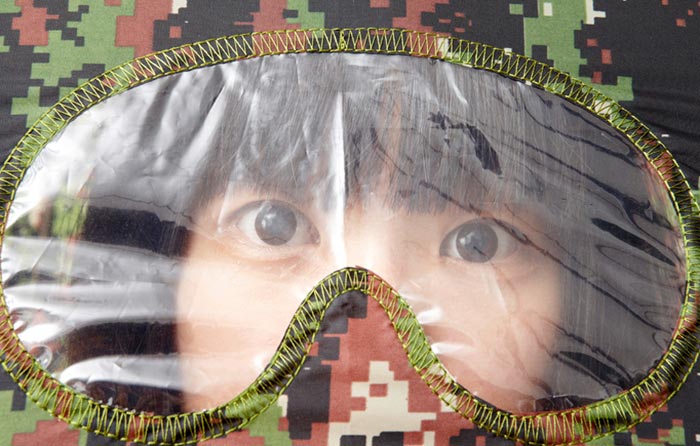 En fait c’est le parfait parapluie pour espion! Il couvre une large surface et est très profond… Du coup, pour bien voir, tout a été prévu et des sortes de lunettes ont été intégrées, en transparence, à la toile de ce parapluie design… J’adore… C’est un peu ridiule et terriblement décalé mais j’adore…