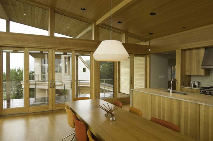 Conçue par le cabinet Boora Architects, cette résidence design est en forme de U avec une cour centrale orientée vers la vue… Mais hormis cette situation idéale, la maison est ouverte sur plusieurs faces et offre ainsi une vue à 180° sur un panorama d’exception… Une terrasse sublime, des baies vitrées gigantesques, une luminosité à couper le souffle… Je ne saurais presque plus quoi ajouter! Si ce n’est que la décoration intérieure de cette résidence design achève d’en faire un joli chalet côtier luxueux et moderne… Qui dit mieux?