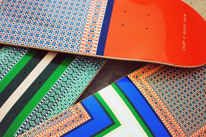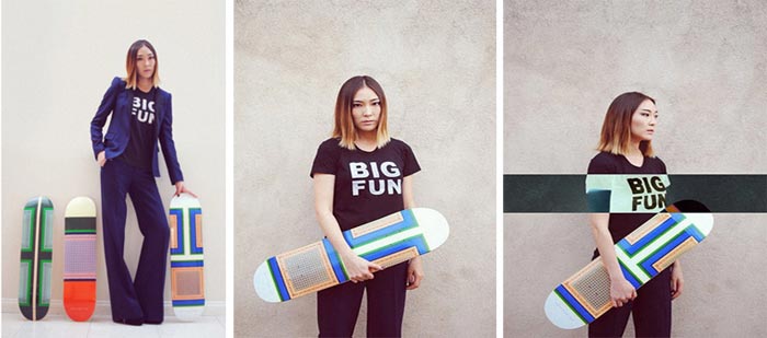 La blogueuse mode Jayne Min du blog STOP IT RIGHT NOW a décidé de joindre deux de ses passions : la mode et le skateboard… Elle a conçu des planche de skate dont l’envers reprend les imprimés vedettes du dernier défilé CELINE.