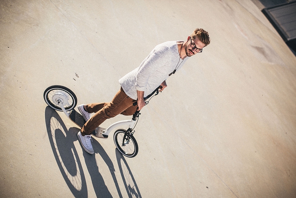 Cet engin est un mix entre un vélo, une trottinette et un skateboard.