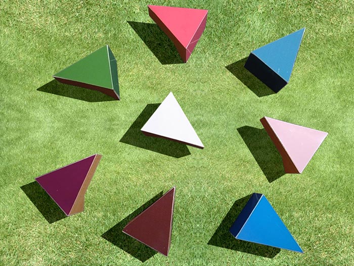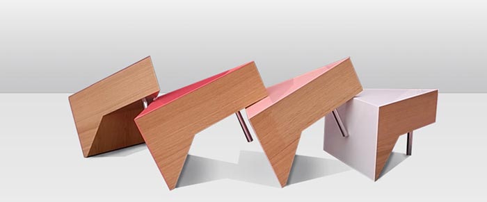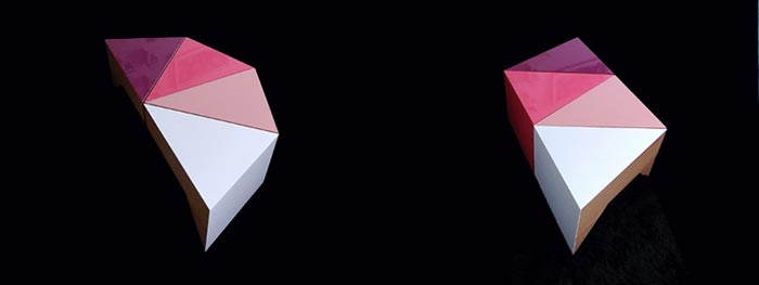 Ce sont les designers japonais de chez Mizmiz Design qui ont imaginé cette ligne de tables design aux formes triangulaires rappelant celles de bonnes part de gâteau… Evidemment, elles ont été baptisées Cake. Ça leur va plutôt bien, non? Leurs couleurs sont acidulées et très vives et leur formes très épurées mais vraiment sympa et finalement assez atypiques.