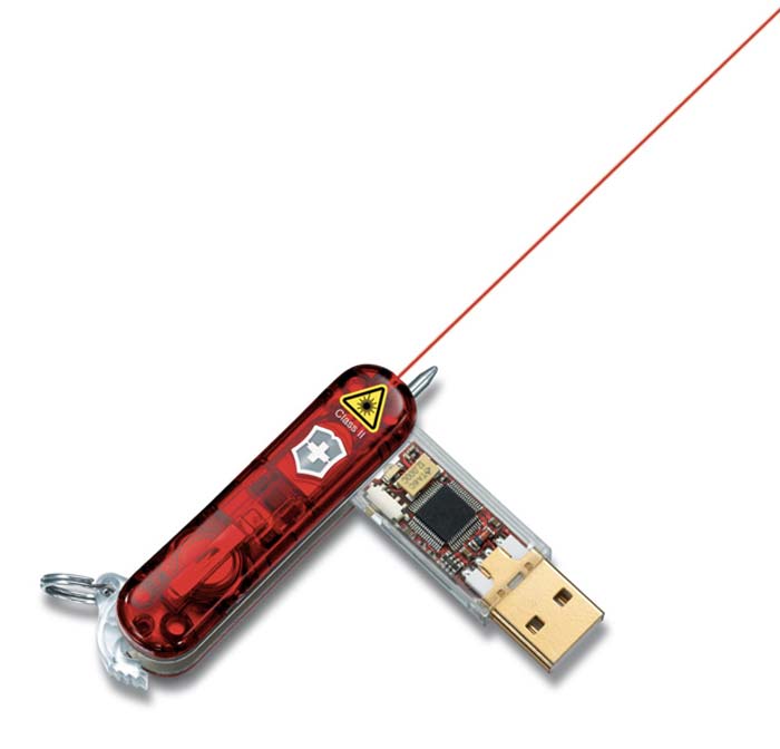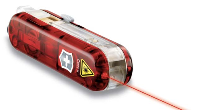 En plus de proposer tout un ensemble d’accessoires disons « classiques » pour un couteau suisse, le Victorinox Flash Light Laser est pourvu d’un pointeur laser, d’une clé USB ainsi que d’un stylo à bille… C’est la révolution!
