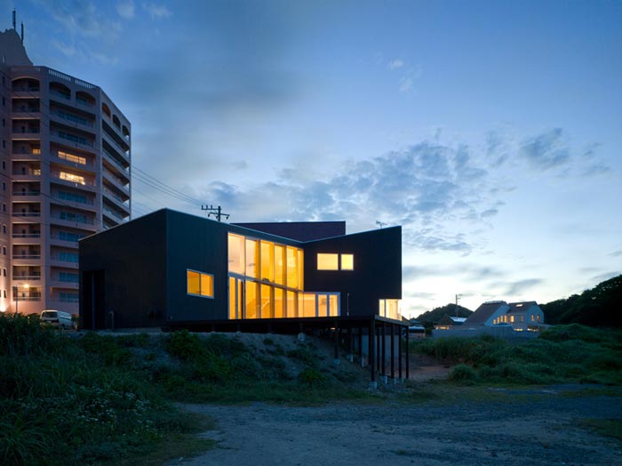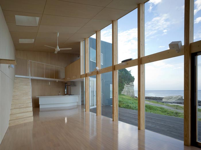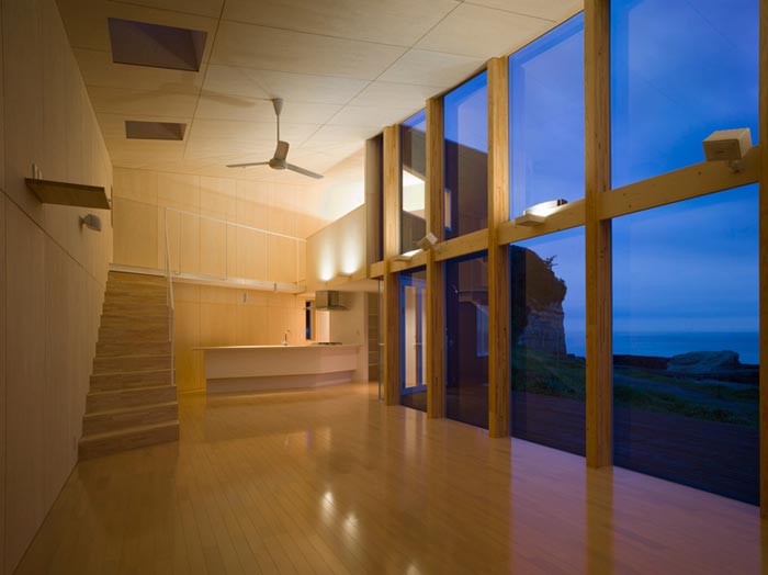 C’est le cabinet d’architecture Atelier Haretoke qui s’est chargé de la conception de cette villa design qui s’étend sur deux étages. Alors évidemment, à l’heure ou ces photos ont été prises, l’aménagement intérieur n’était pas encore fait mais l’espace disponible et surtout cette vue panoramique laisse présager une ambiance des plus agréable… Cette énorme surface vitrée qui occupe les deux étage sur toute une façade est vraiment sympa et permet d’obtenir une luminosité sans pareil.